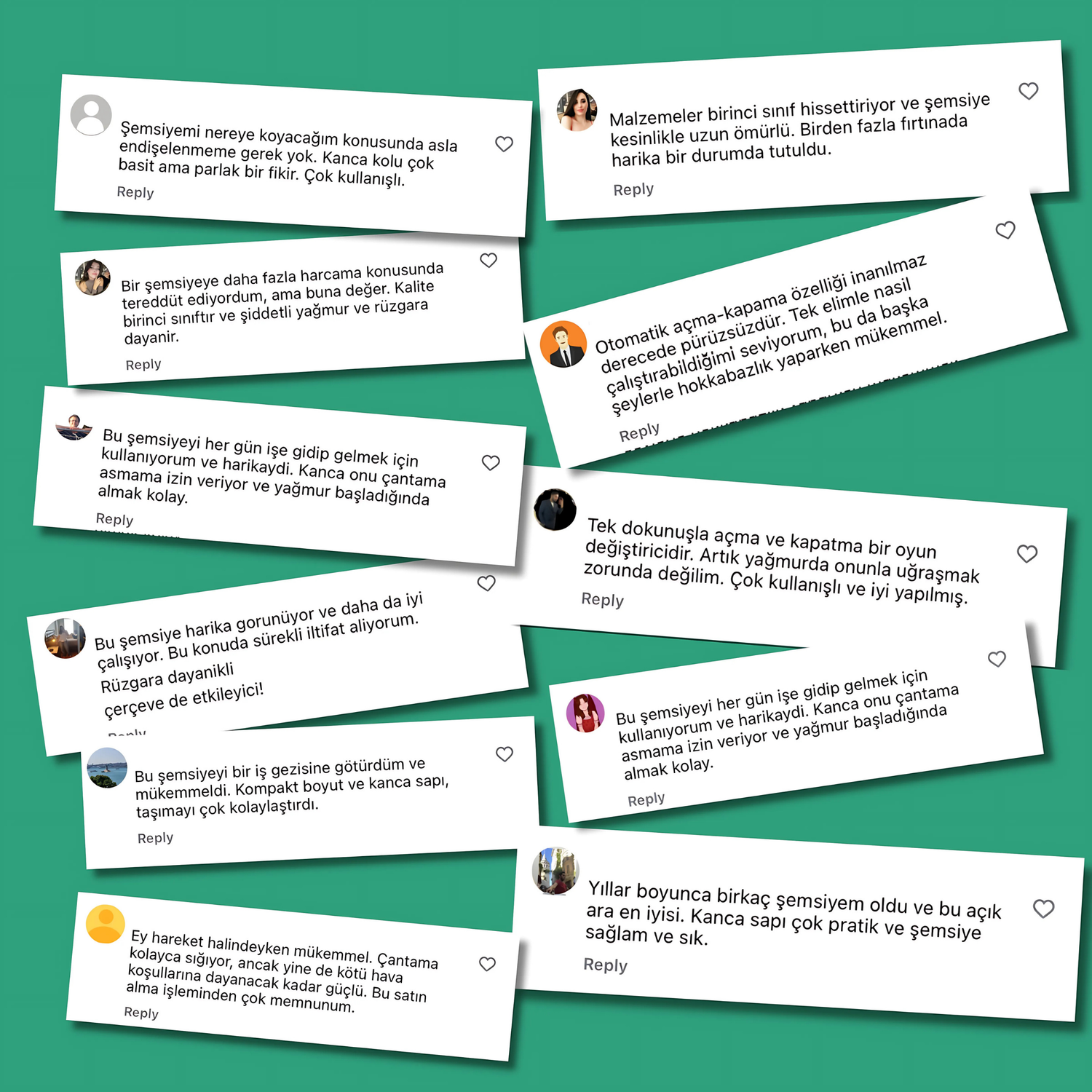 Şu ana kadar Otomatik Şemsiyemizi satın alan binlerce kişiden sadece birkaçını sizlerle paylaşıyoruz